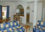 Open plan sitting area with dining room, colour satellite TV, bathroom,
